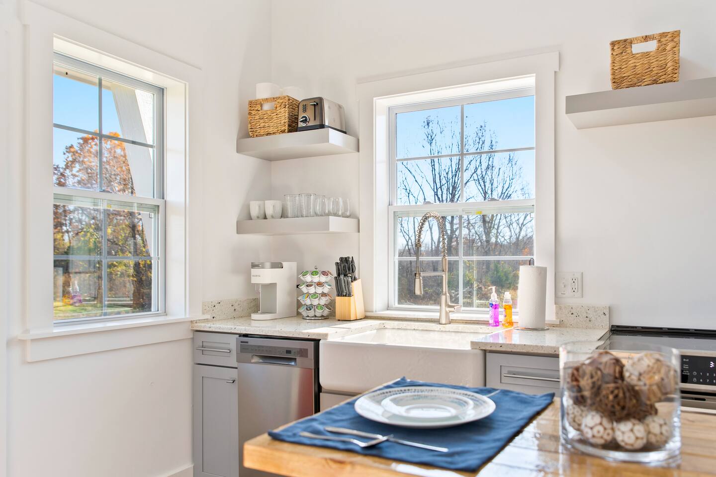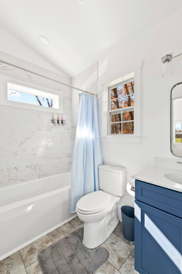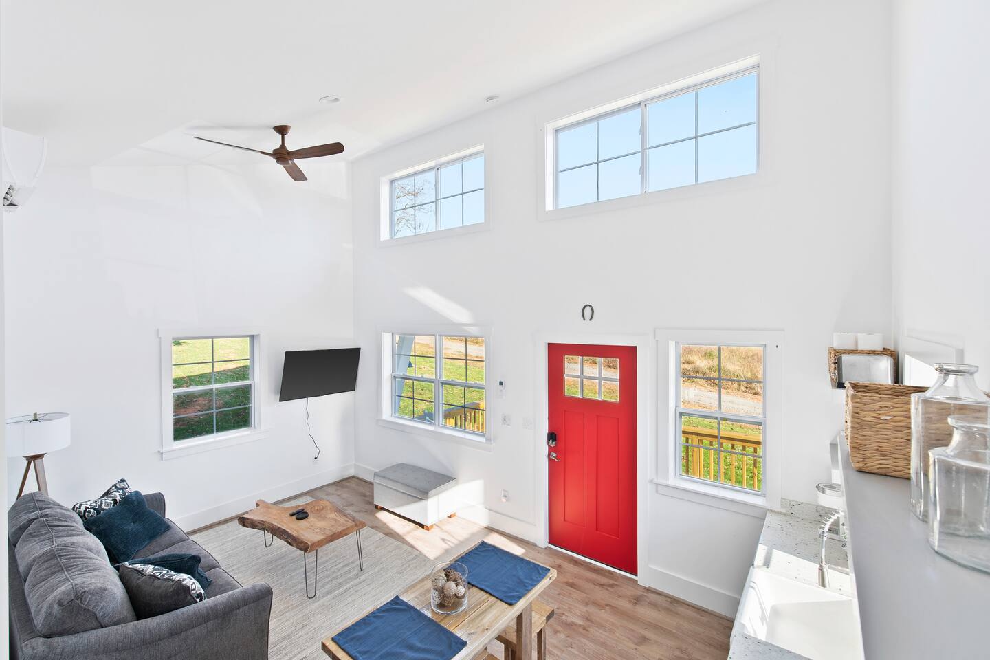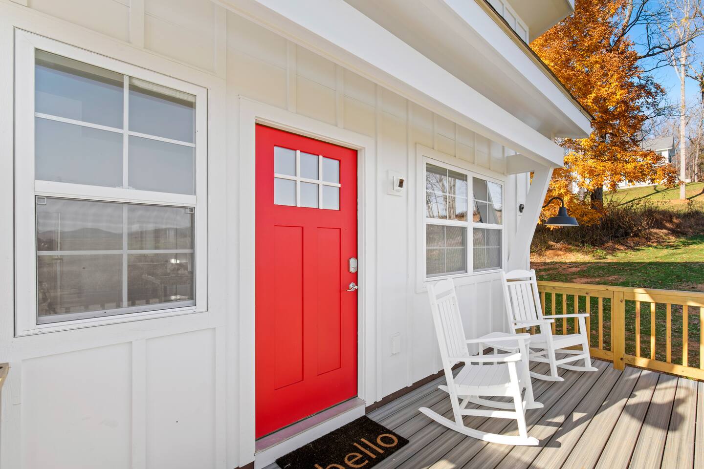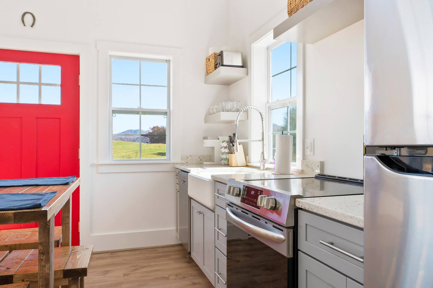 Kick back and relax in this calm and stylish space. Nestled in the heart of the Blue Ridge Mountains and Virginia wine country (just off RTE 151 in Afton), this newly constructed guest cottage is the perfect place for a fun filled getaway. Just minutes away from fantastic hiking, wineries, breweries, and restaurants, this light filled and modern cottage is perfectly framed to take advantage of mountain views from the picture windows. (Please note: all windows have blinds installed, installation was completed after the photos were taken.) Custom designed and completed in October 2022, this cottage located in the heart of Nelson County and the Route 151/Brew Ridge Trail has it all! Mixing modern design elements with a relaxed country farmhouse feel, we hope you'll love the house and property as much as we do. Set on just under 10 acres of open meadows with mountain views, woods, and peace and tranquility. Enjoy coffee or a meal on the front deck/patio with mountain views while the deer come and say hello. Designed with high ceilings, immense windows, picturesque views, and natural light, you may not want to leave! The bedroom consists of a queen size bed, and is separate from the living area and kitchen. The full bathroom contains a combo tub and shower. The living room couch pulls out into a queen size sofa bed. The kitchen is equipped with everything you need to enjoy your own meals. From the electric stove top burners to the granite countertops, stainless steel appliance, and dishwasher, enjoy a luxurious meal in your very own gourmet kitchen. We have pots, pans, utensils, etc. The cottage has its own high speed fiber optic internet connection, allowing for fast and efficient WiFi access. The 50 inch 4K HDR Roku smart TV picks allows you to stream your favorite smart streaming apps using Roku Guest Access, which automatically logs you out when you depart. You will have access to the entire home, it will be your house during the stay. Please note that the main house up the hill may also be occupied during your stay. While you have privacy from one another, you share the same driveway. Things to note: -Our main house is about 100-150 yards up the driveway from the cottage. (See pictures depicting their respective locations.) -The cottage is screened from the main house by trees, and they both can be rented in conjunction with one another if availability allows -While we love animals, no pets allowed -No smoking allowed anywhere on the premises -Absolutely no parties -Children and babies welcome -Quiet hours asked from 10 PM - 8 AM -There is a dishwasher in the kitchen -The house is on a septic system and we ask that you help keep our system operational, no foods or grease down the kitchen sink, etc.